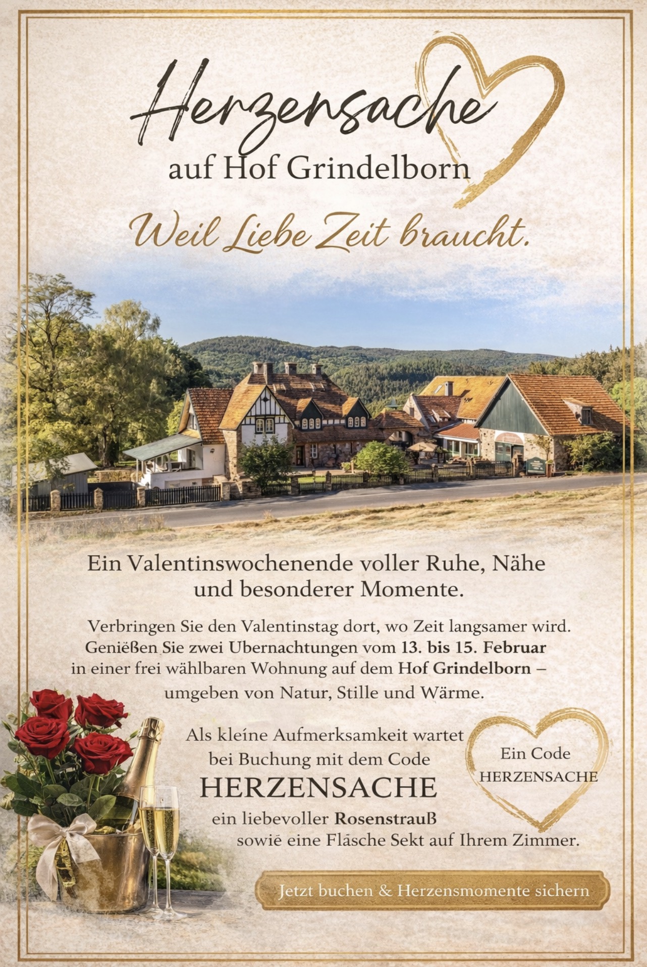 • Liebe Gäste, im Jahr 2026 haben wir die besondere Chance, das über 100 Jahre alte Dach des Hof Grindelborn behutsam zu erneuern und das Anwesen in neuem Glanz erstrahlen zu lassen. Ziel dieser Maßnahme ist es, unseren CO₂-Fußabdruck deutlich zu reduzieren, die Energieeffizienz nachhaltig zu verbessern und den Wohnkomfort für unsere Gäste weiter zu erhöhen. Im Zuge der Arbeiten kann es zeitweise zu leichten, tagsüber begrenzten Handwerksgeräuschen kommen. Selbstverständlich achten wir darauf, mögliche Beeinträchtigungen so gering wie möglich zu halten und danken Ihnen schon jetzt für Ihr Verständnis. Und ganz ehrlich: Erfahrungsgemäß werden unsere Baustellen tagsüber mit ebenso viel handwerklichem Können wie sichtbarem Muskel-Einsatz betrieben – ein kleines Augenzwinkern für alle Gäste, die zufällig vorbeischauen 😉.